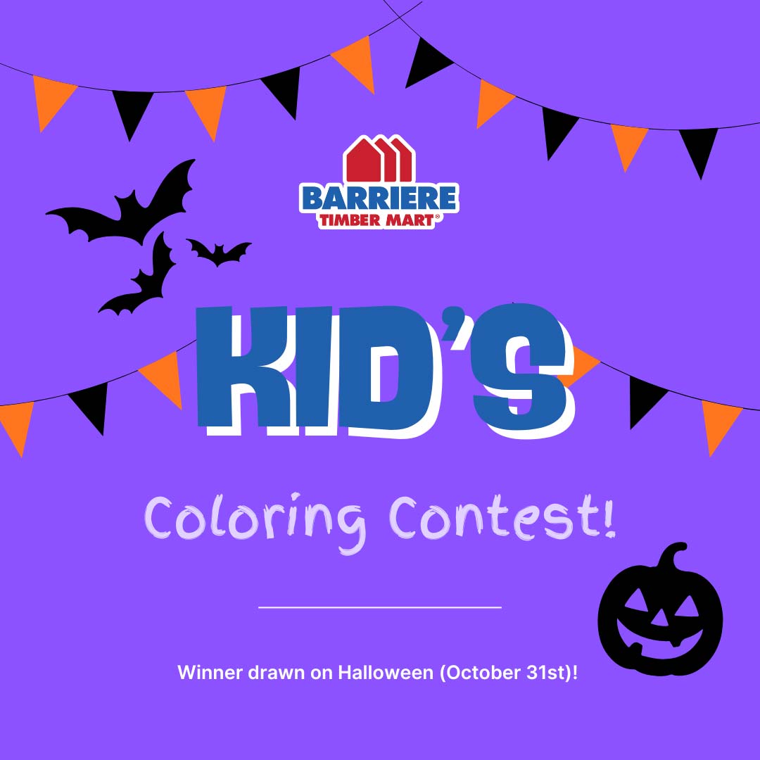 • 3. Return your completed colouring page to Barriere Timber Mart before Halloween (October 31)